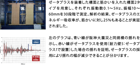 木造在来工法における制震でこれまで課題とされていた、高い制震性能、低コスト、シンプルな構造、簡易な設置、効率的な配置、メンテナンスフリー、そのすべてを実現した、画期的な制震システムです。 ※イトーピアゼータプラスはオプションとなります。