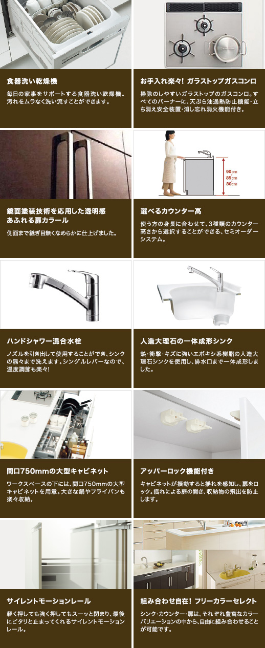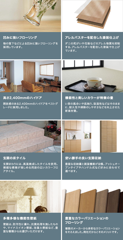 テーマごとに、モデルプランと住宅設備機器、インテリア素材を展示しております。新しい住まいとの出会いや発見の場であるために、常に最新の情報を発信していく、住まいの総合情報スペースです。