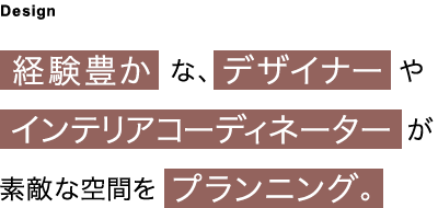 デザイン賞受賞歴など、経験とセンスあるデザイナーやインテリアコーディネータが、プロならではのアイデアで、住まいを鮮やかに生まれ変わるようなプランをご提案。デザインしだいで、リフォームはもっと素敵に変わります。
