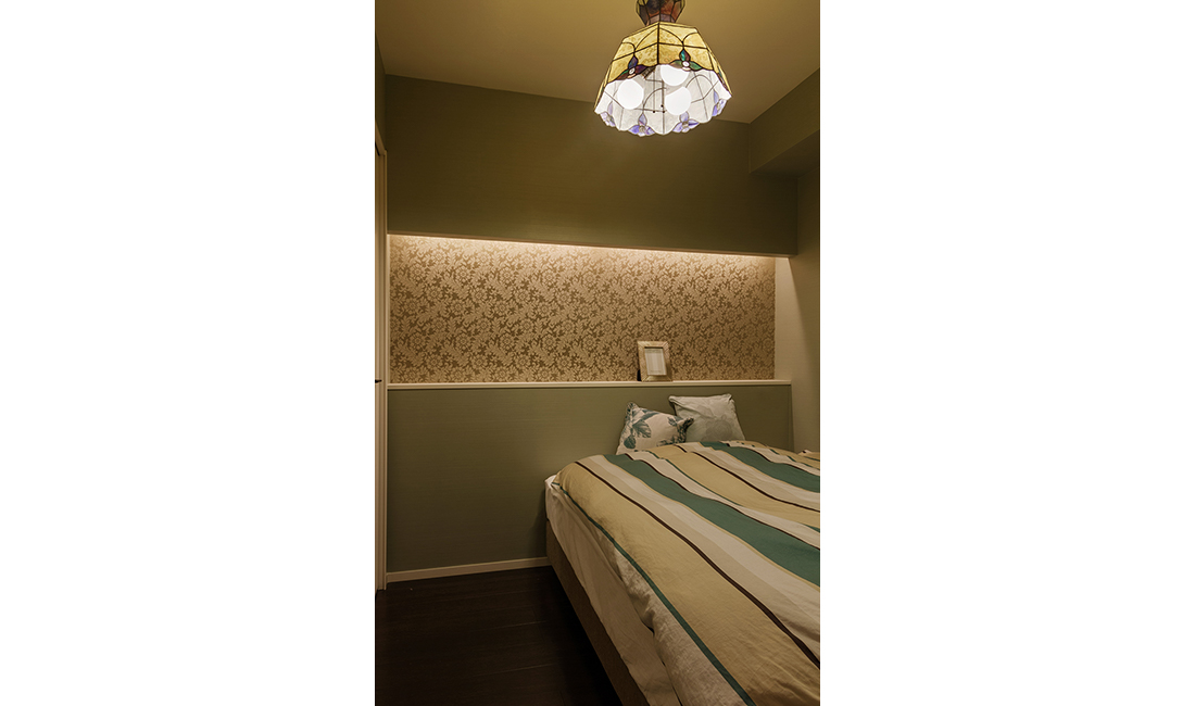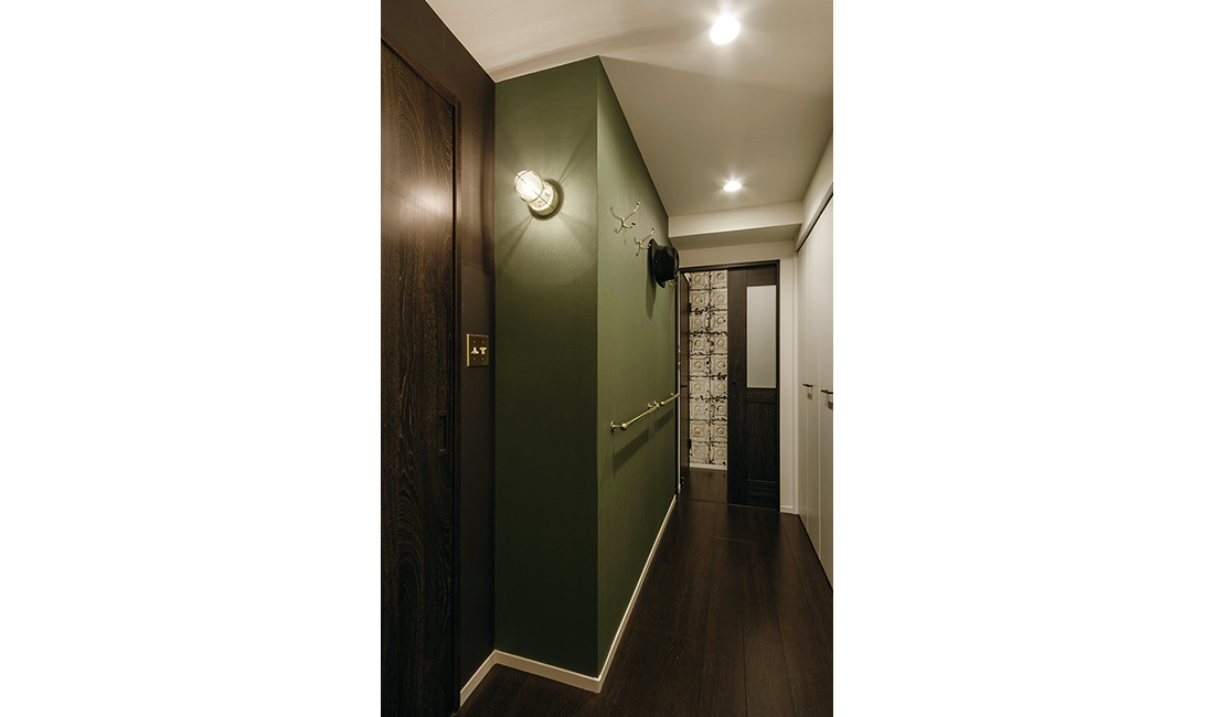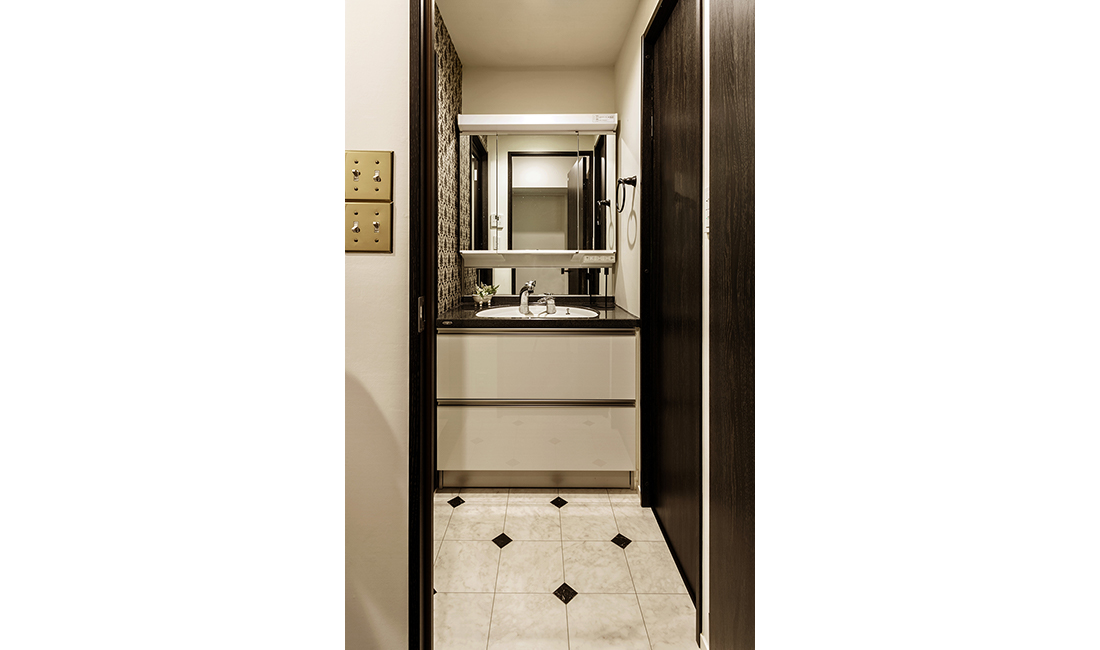 基本的には、ややユーズド調のテイストが強く出るようなデザインとなりましたが、そこにエレガントな照明を加えて融合のバランスを取るように考えました。一方で、トイレや洗面所はホワイトを基調としたエレガントなクロスや床にするなど、ゾーンによってテイストを分けることもしました。