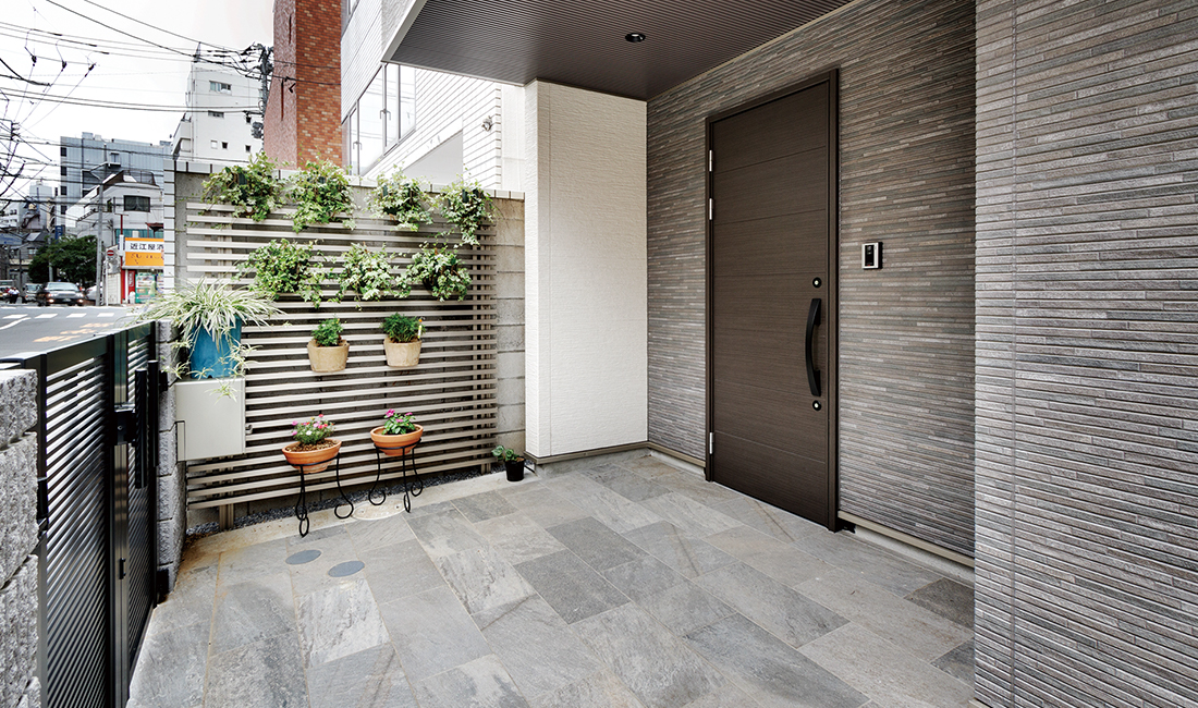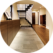 - 10畳の広さを持つエントランスホールは出迎えにふさわしい落ち着いた雰囲気に。